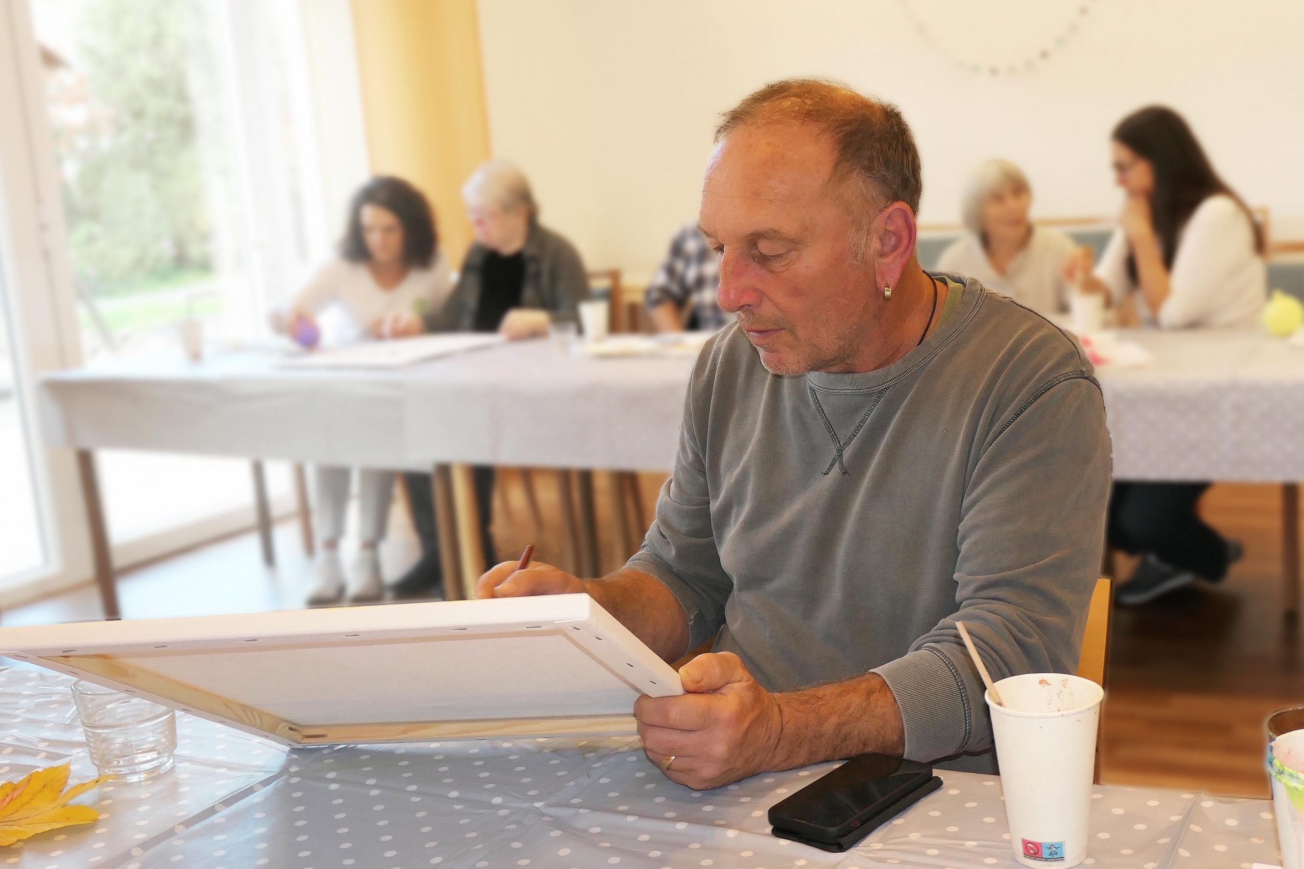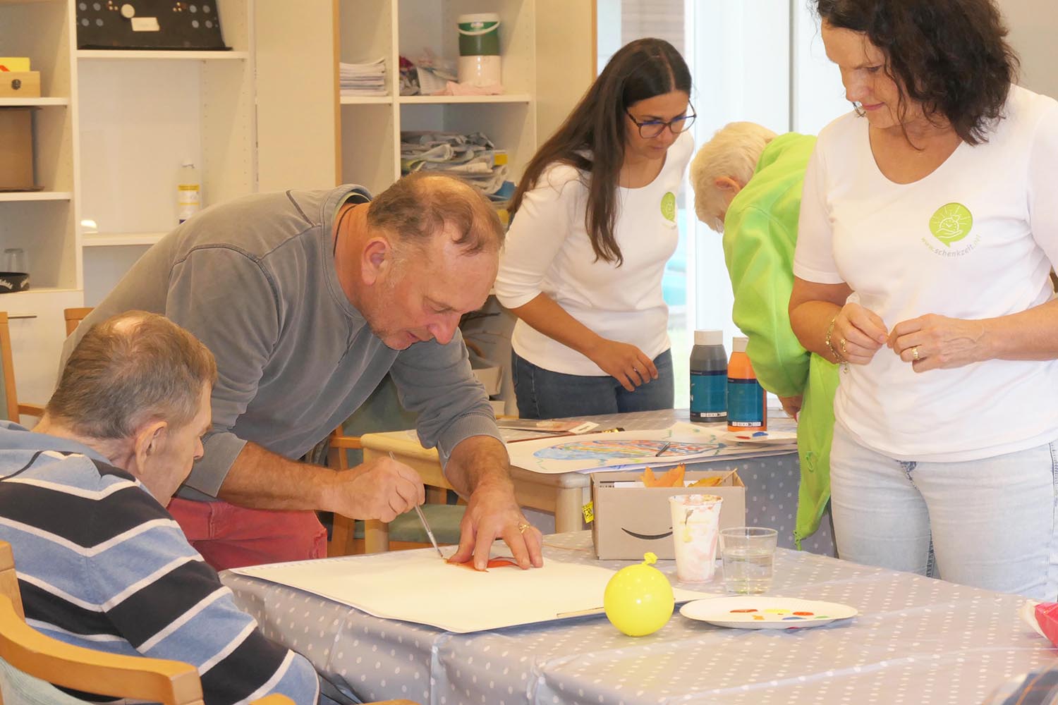 Ich ging mit einem wohltuendem Gefühl wieder hinaus in den Herbst mit seinen Farben – die Farben, die ich eben noch in den Werken der Teilnehmenden gesehen hatte. Was ich an diesem Tag erleben durfte, war weit mehr als eine Malstunde. Es war ein Ausdruck von Gemeinschaft, von Vertrauen und gegenseitiger Ermutigung – ein lebendiges Beispiel für das, was schenkzeit ausmacht: das sorgende Miteinander und die gelebte soziale Teilhabe.